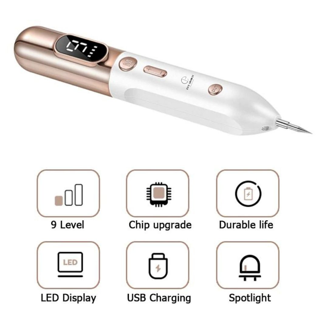 The Laser Plasma Pen is a clinically validated micro-needle device for removing tattoos, freckles, moles, skin tags, and age spots. Its electric ion carbonation technology allows you to remove spots on your skin instantly without damaging other tissues around it. It stimulates cell regeneration, safely eliminating dark spots and skin pigmentation without bleeding.
